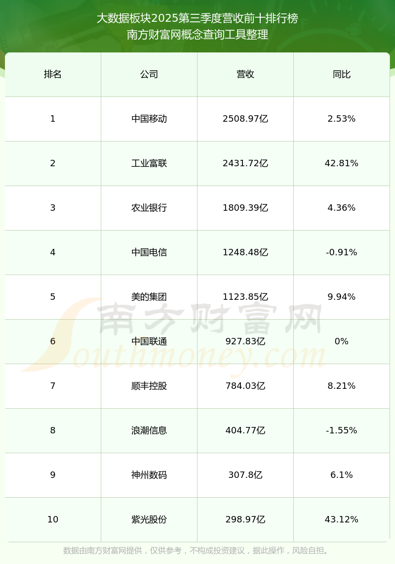 按照南方财富网概念查询工具统计,该股所属板块为大数据板块,该板块共有428只股票,华立股份2025第三季度营收在该板块中排名为第185名,该板块2025第三季度营收排名前十的股票如下表: