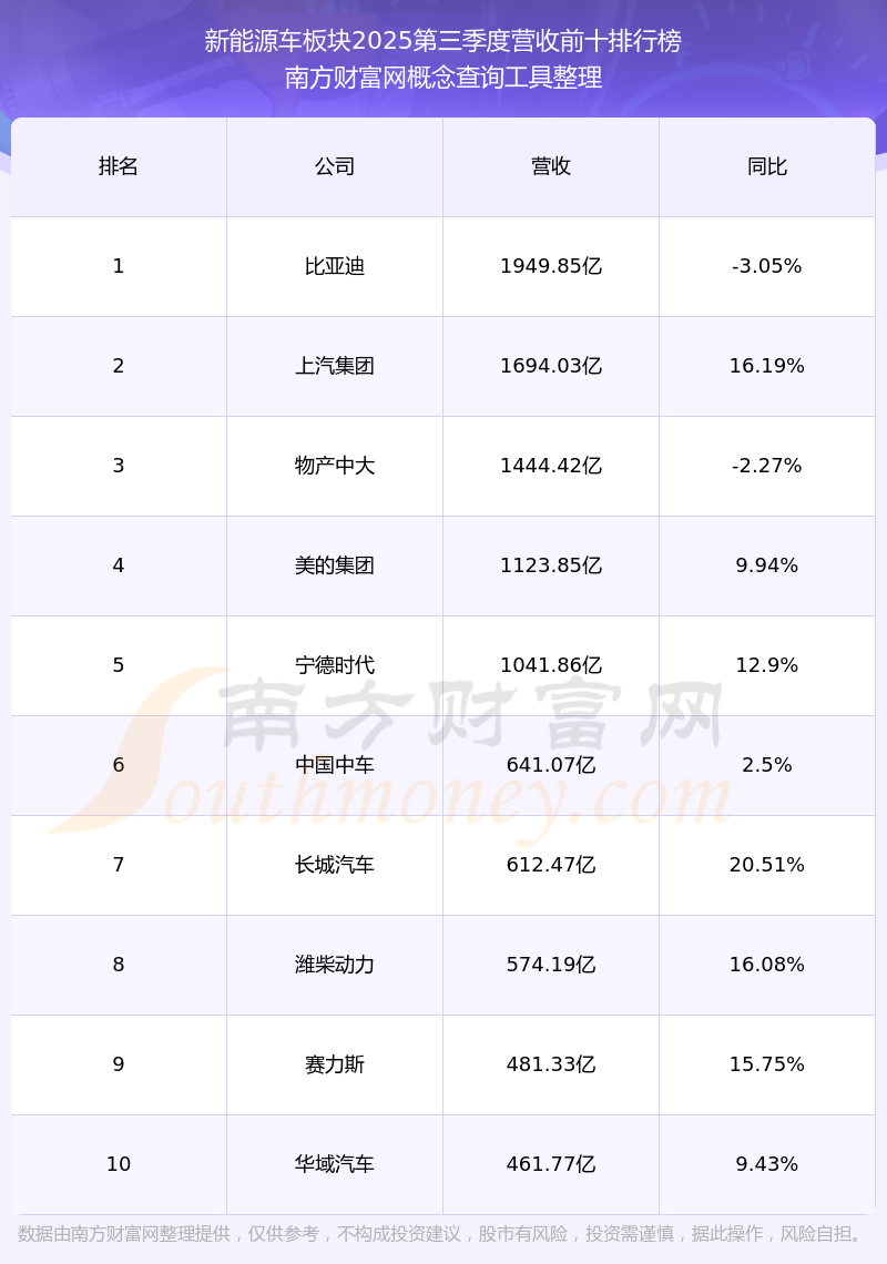 按照南方财富网概念查询工具统计,该股所属板块为新能源车板块,该板块共有657只股票,天永智能2025第三季度营收在该板块中排名为第633名,该板块2025第三季度营收排名前十的股票如下表: