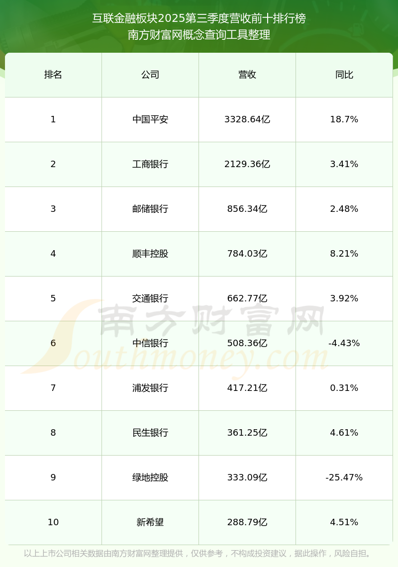 按照南方财富网概念查询工具统计,该股所属板块为互联金融板块,该板块共有238只股票,熊猫金控2025第三季度营收在该板块中排名为第223名,该板块2025第三季度营收排名前十的股票如下表:
