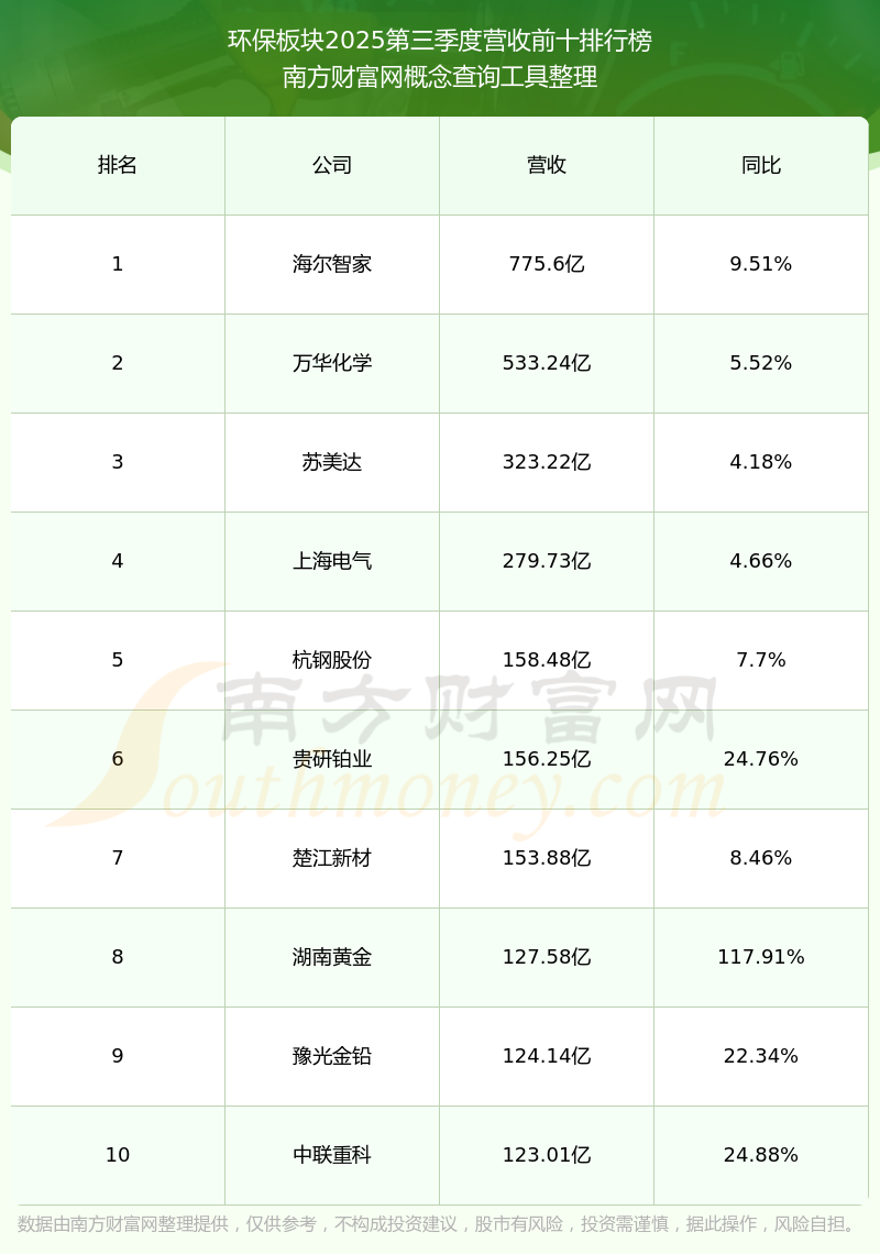 按照南方财富网概念查询工具统计,该股所属板块为环保板块,该板块共有390只股票,丛麟科技2025第三季度营收在该板块中排名为第311名,该板块2025第三季度营收排名前十的股票如下表: