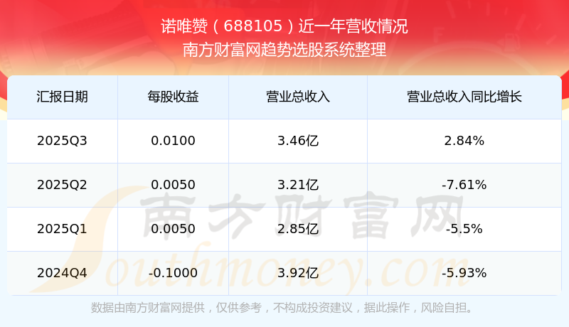 诺唯赞(688105)发布2025年第三季度财报。2025年第三季度诺唯赞实现营业收入3.46亿元,同比增加2.84元%,环比增加7.77%;净利润为348.58万元,同比增长74.55%,环比增长185.85%。