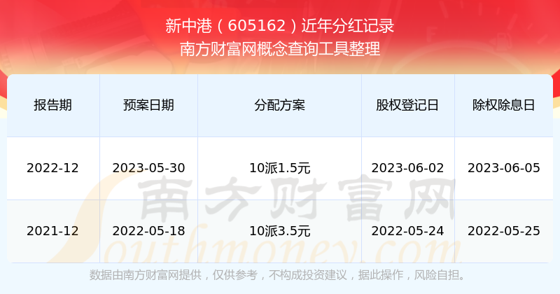 一、新中港(605162)股票分红记录