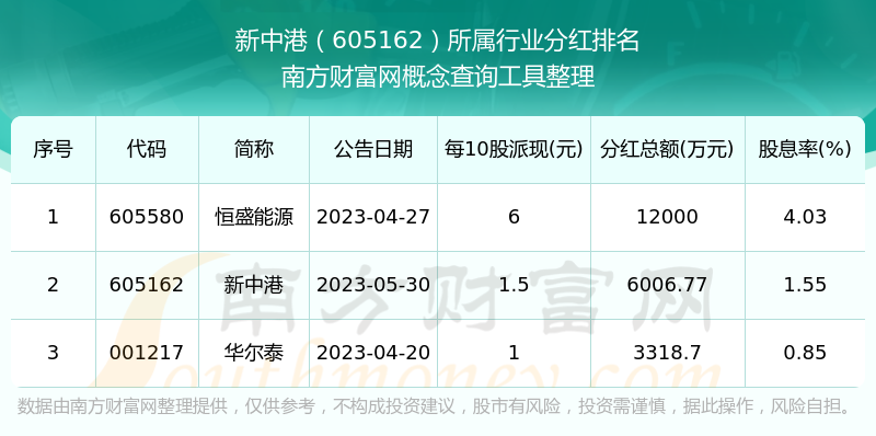 二、新中港605162行业分红排名