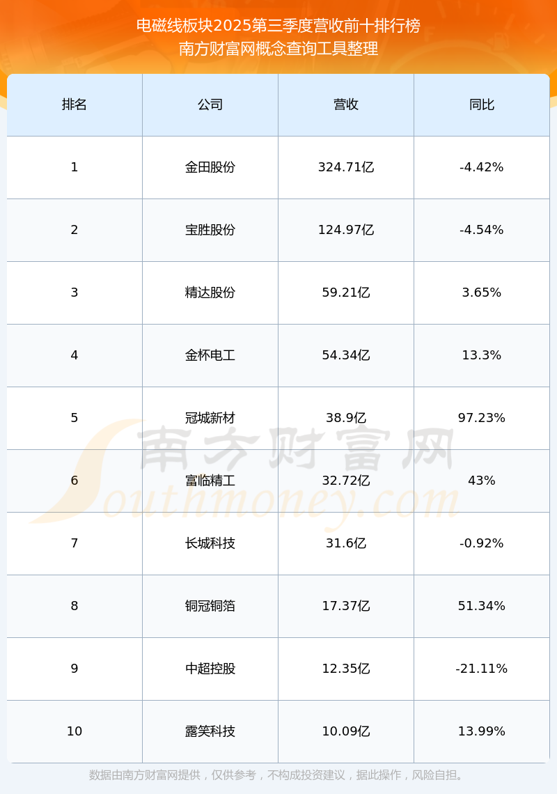 按照南方财富网概念查询工具统计,该股所属板块为电磁线板块,该板块共有20只股票,长城科技2025第三季度营收在该板块中排名为第7名,该板块2025第三季度营收排名前十的股票如下表: