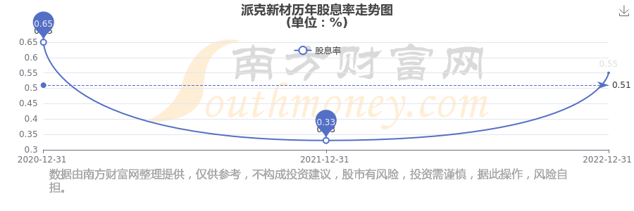 近年派克新材年度股息率走势如下图: