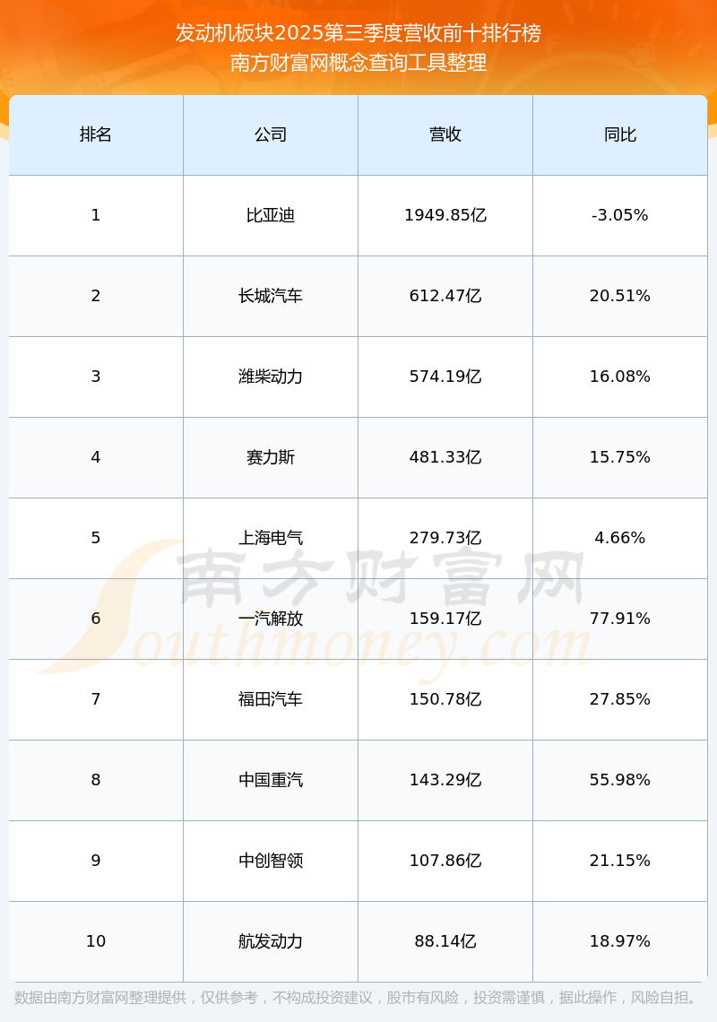 按照南方财富网概念查询工具统计,该股所属板块为发动机板块,该板块共有118只股票,全柴动力2025第三季度营收在该板块中排名为第50名,该板块2025第三季度营收排名前十的股票如下表:
