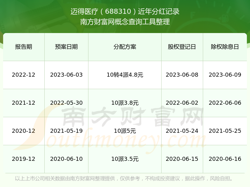 迈得医疗最新一次公布的分红方案:10转4派4.8元。