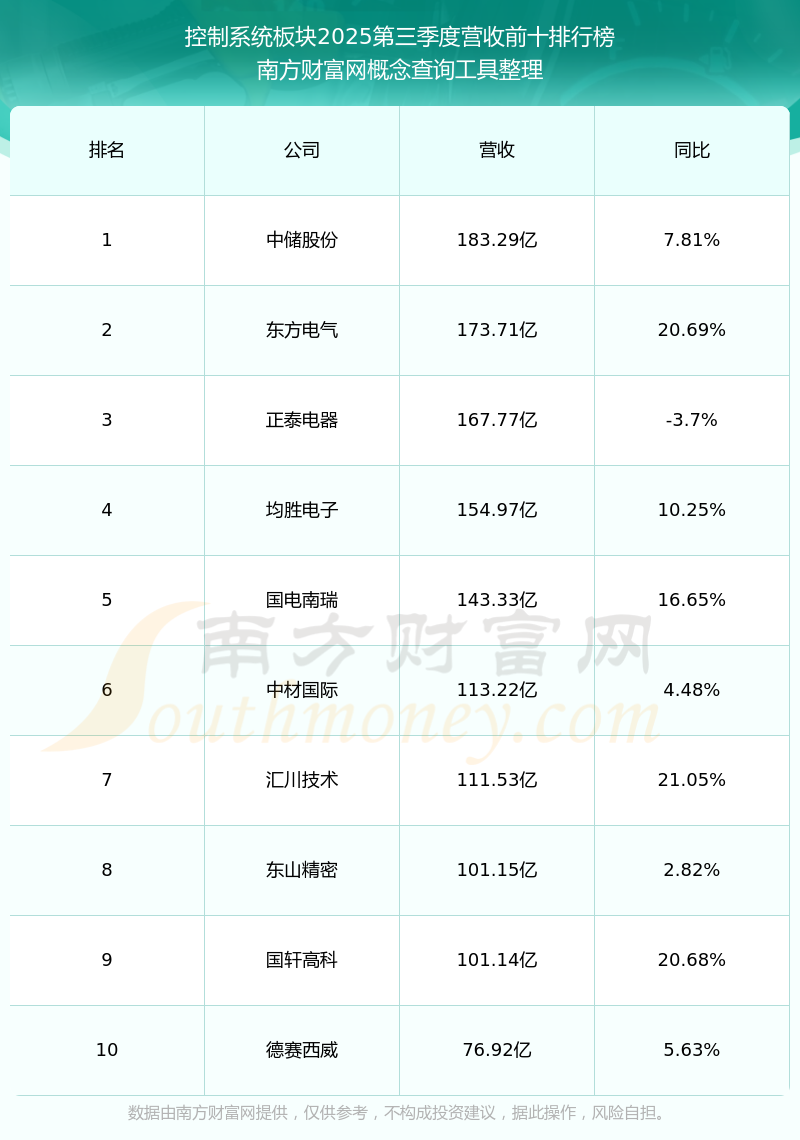 按照南方财富网概念查询工具统计,该股所属板块为控制系统板块,该板块共有194只股票,步科股份2025第三季度营收在该板块中排名为第150名,该板块2025第三季度营收排名前十的股票如下表: