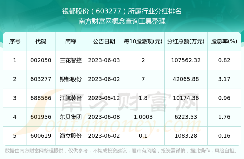 按照南方财富网趋势选股系统统计,银都股份所属行业为制冷设备行业,制冷设备行业分红排名情况如下表: