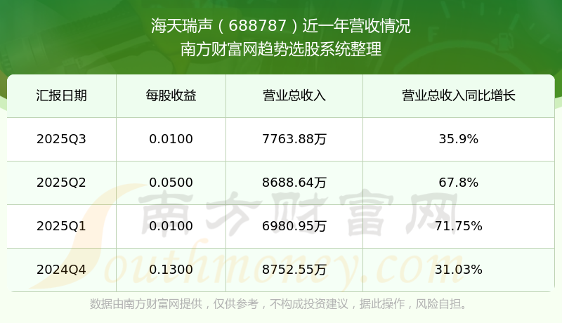 海天瑞声2025年第三季度财报显示,公司主营收入7763.88万元,同比35.9%;归母净利润37.51万元,同比-88.88%;扣非净利润-3178.31元,同比-100.18%;