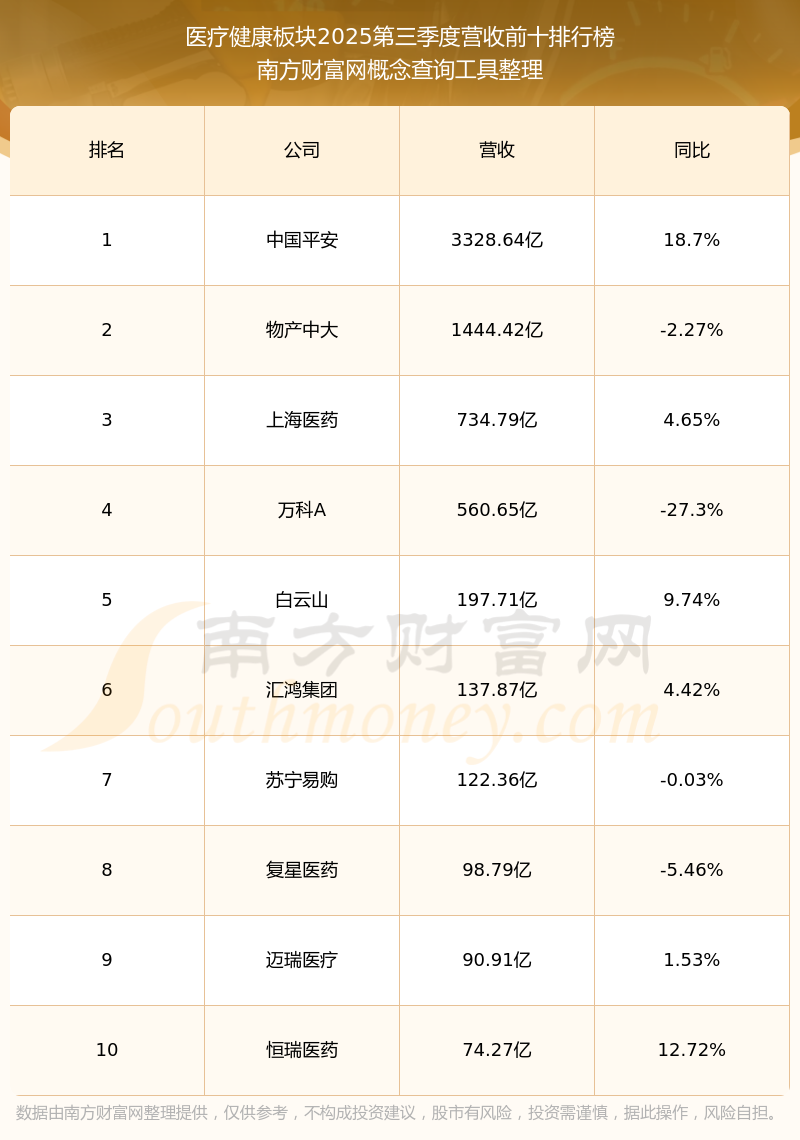 按照南方财富网概念查询工具统计,该股所属板块为医疗健康板块,该板块共有95只股票,金发科技2025第三季度营收在该板块中排名为第95名,该板块2025第三季度营收排名前十的股票如下表: