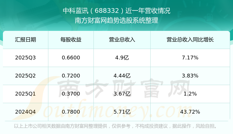 中科蓝讯股票近一年营收情况如下表: