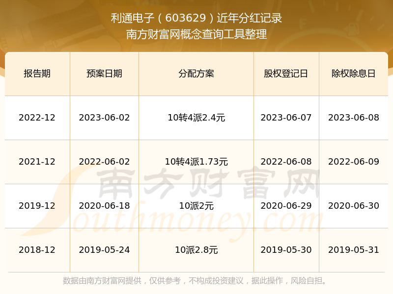 利通电子最新一次公布的分红方案:10转4派2.4元。