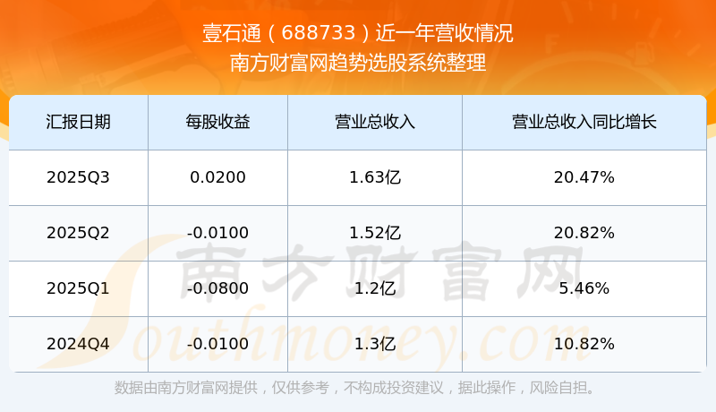 壹石通股票近一年营收情况如下表: