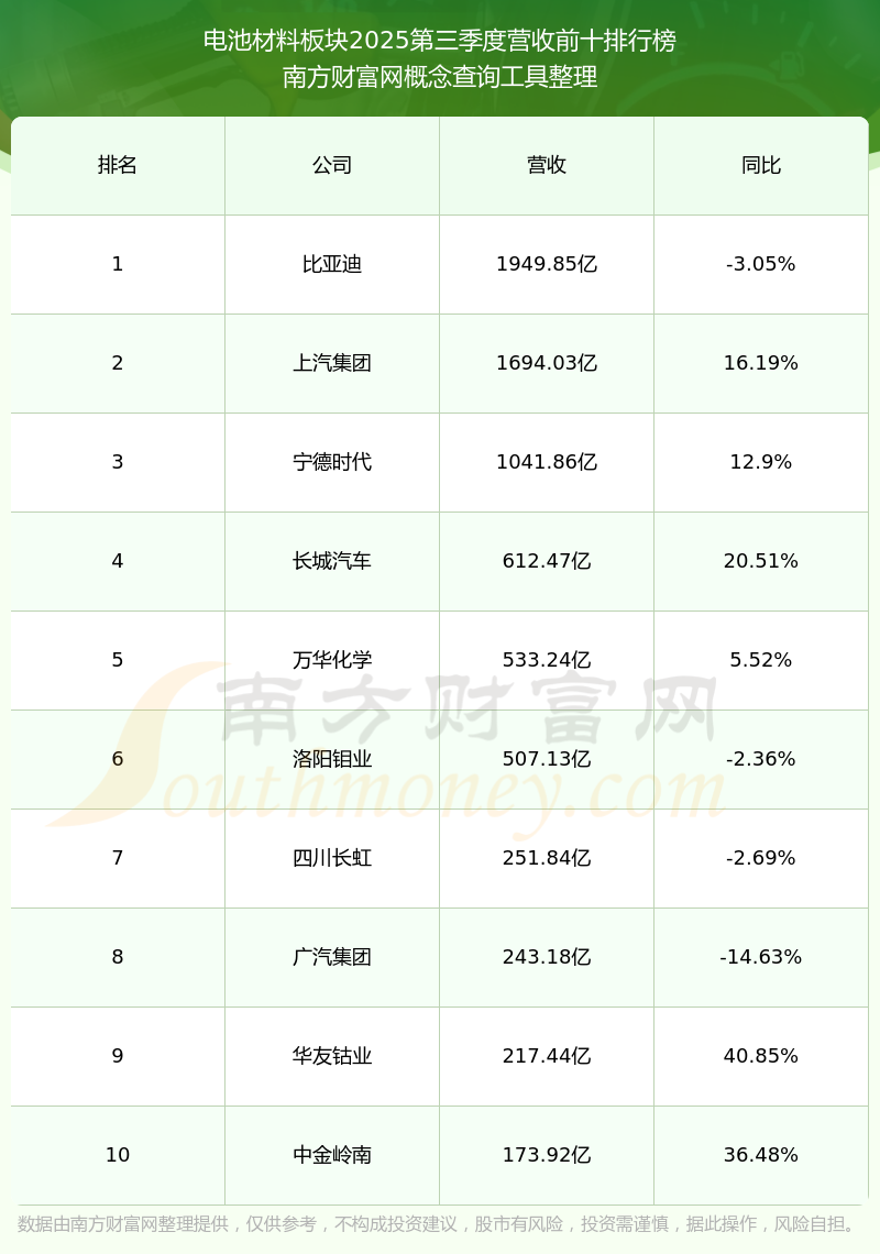 按照南方财富网概念查询工具统计,该股所属板块为电池材料板块,该板块共有110只股票,壹石通2025第三季度营收在该板块中排名为第104名,该板块2025第三季度营收排名前十的股票如下表: