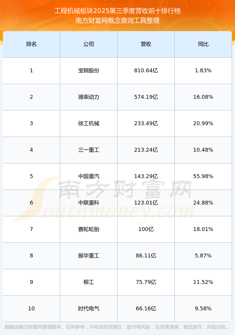 按照南方财富网概念查询工具统计,该股所属板块为工程机械板块,该板块共有92只股票,厦工股份2025第三季度营收在该板块中排名为第79名,该板块2025第三季度营收排名前十的股票如下表: