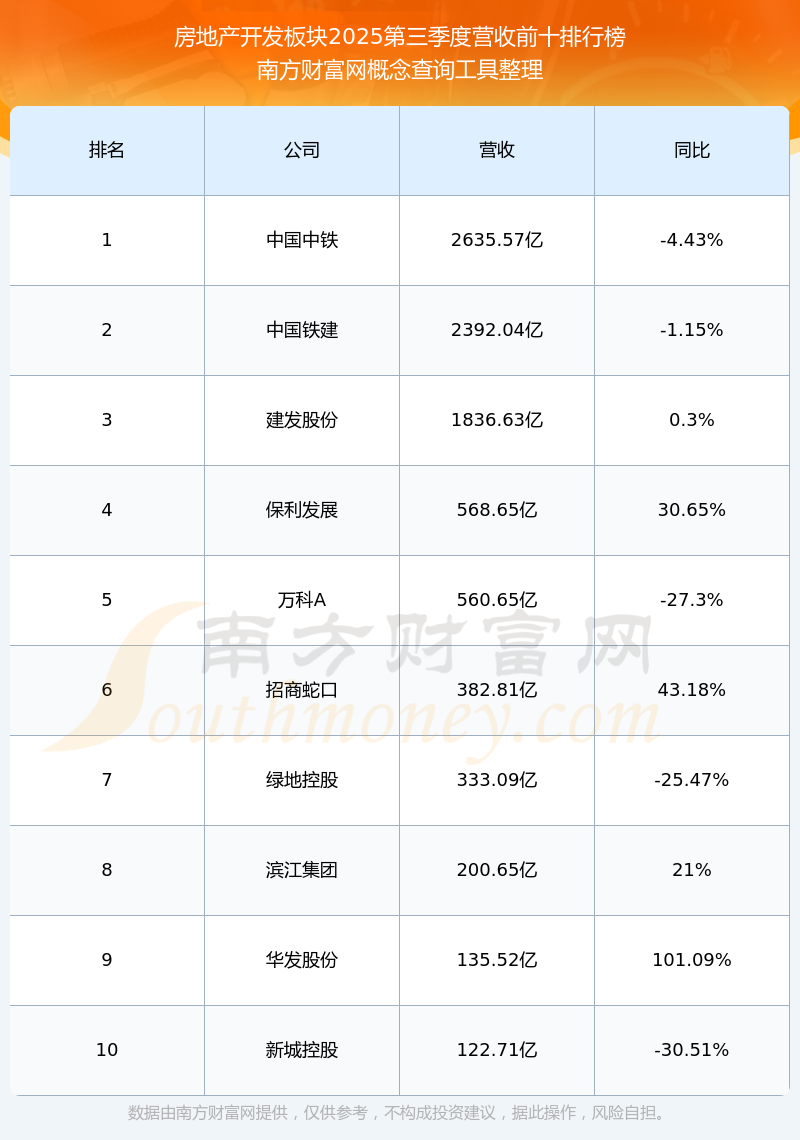 按照南方财富网概念查询工具统计,该股所属板块为房地产开发板块,该板块共有142只股票,万通发展2025第三季度营收在该板块中排名为第114名,该板块2025第三季度营收排名前十的股票如下表: