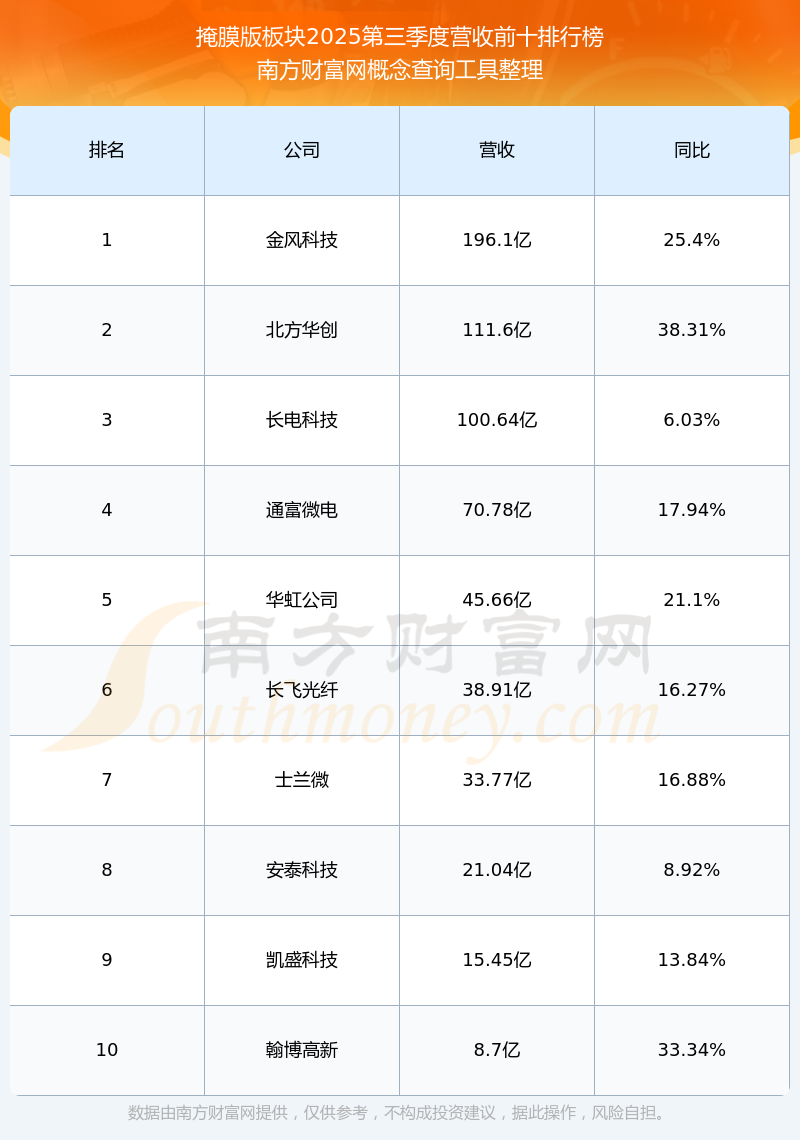 按照南方财富网概念查询工具统计,该股所属板块为掩膜版板块,该板块共有26只股票,路维光电2025第三季度营收在该板块中排名为第19名,该板块2025第三季度营收排名前十的股票如下表: