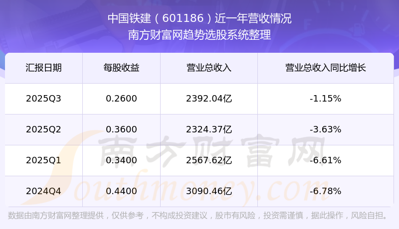 中国铁建股票近一年营收情况如下表:
