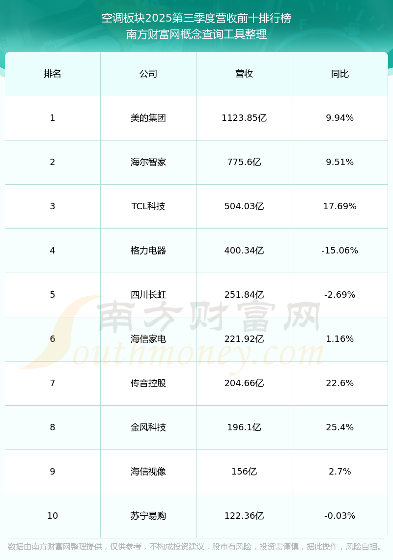 按照南方财富网概念查询工具统计,该股所属板块为空调板块,该板块共有85只股票,佳力图2025第三季度营收在该板块中排名为第75名,该板块2025第三季度营收排名前十的股票如下表: