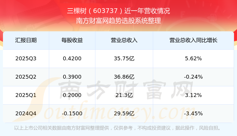 三棵树(603737)发布2025年第三季度财报。2025年第三季度三棵树实现营业收入35.75亿元,同比增加5.62元%,环比增加-2.99%;净利润为3.08亿元,同比增长53.64%,环比增长-6.93%。