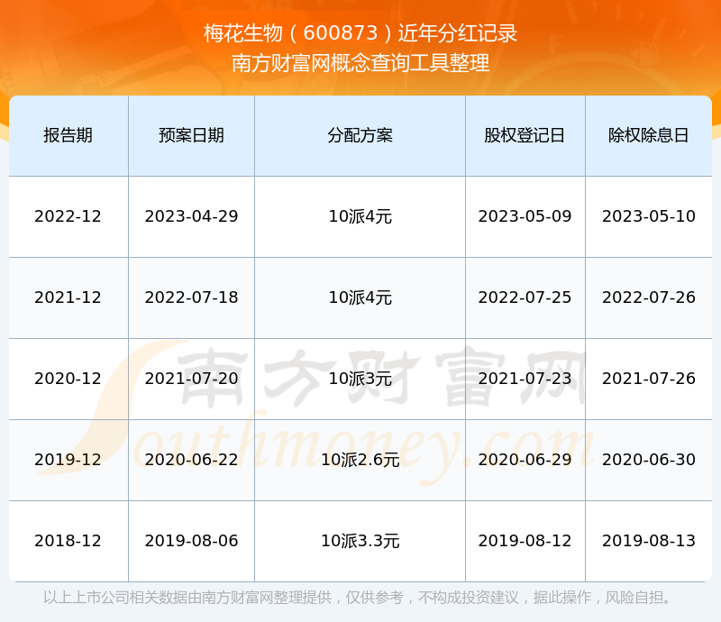 近年梅花生物分红情况如下表所示: