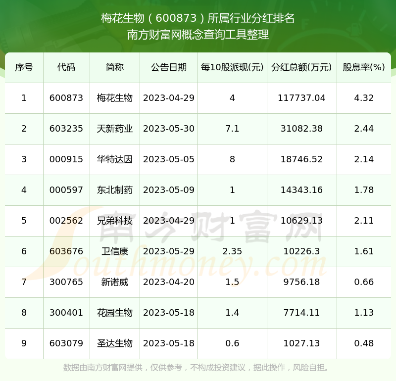 二、梅花生物600873行业分红排名