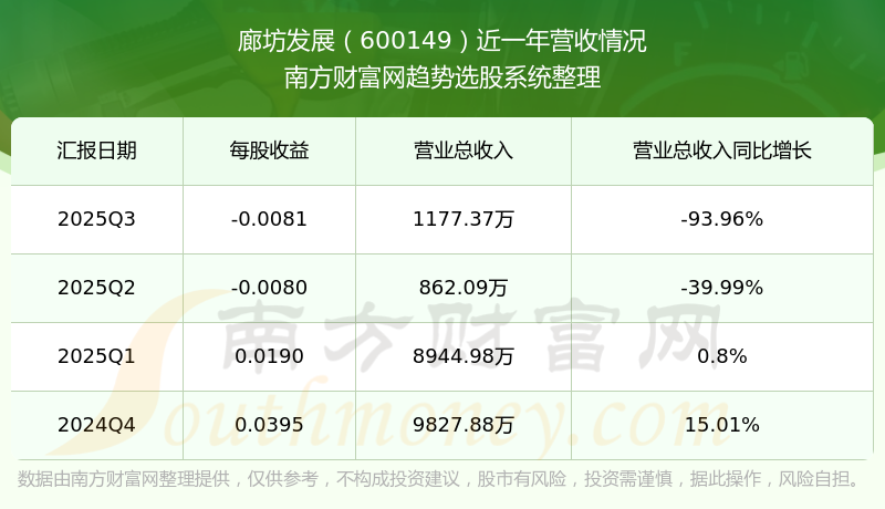 廊坊发展股票近一年营收情况如下表: