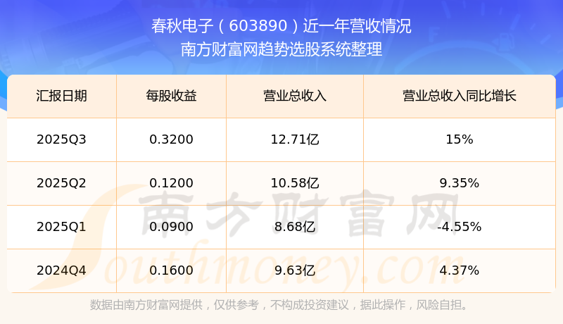 春秋电子(603890)披露2025年第三季度报告,报告期实现营收12.71亿元,同比15%;归母净利润1.38亿元,同比20.61%;扣非净利润1.14亿元,同比452.42%。