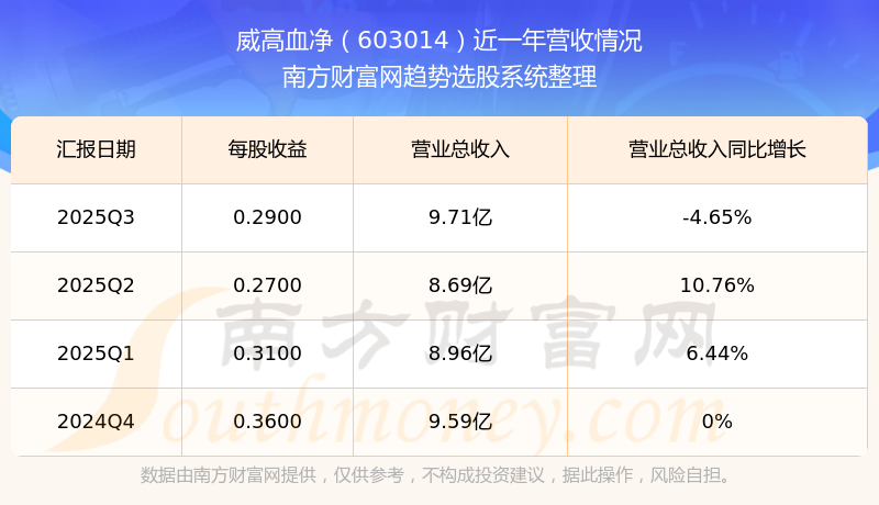 威高血净股票近一年营收情况如下表:
