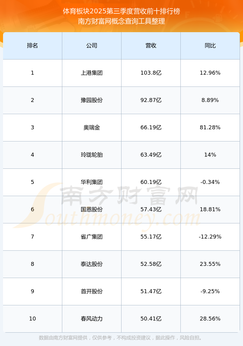 按照南方财富网概念查询工具统计,该股所属板块为体育板块,该板块共有134只股票,当代明诚2025第三季度营收在该板块中排名为第113名,该板块2025第三季度营收排名前十的股票如下表: