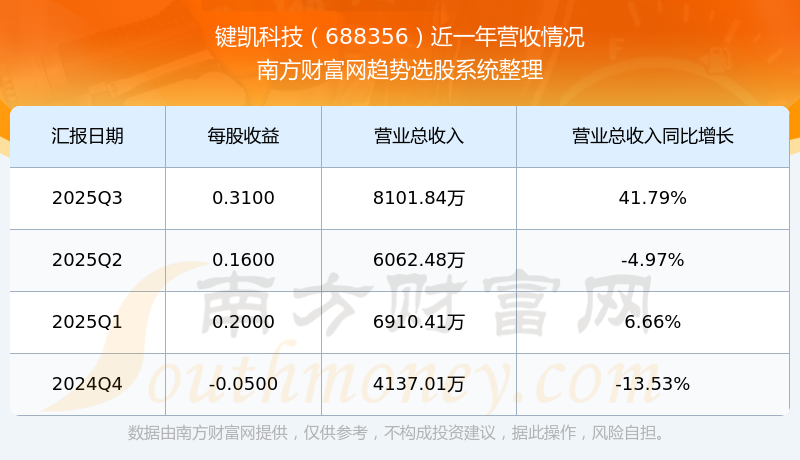 键凯科技股票近一年营收情况如下表: