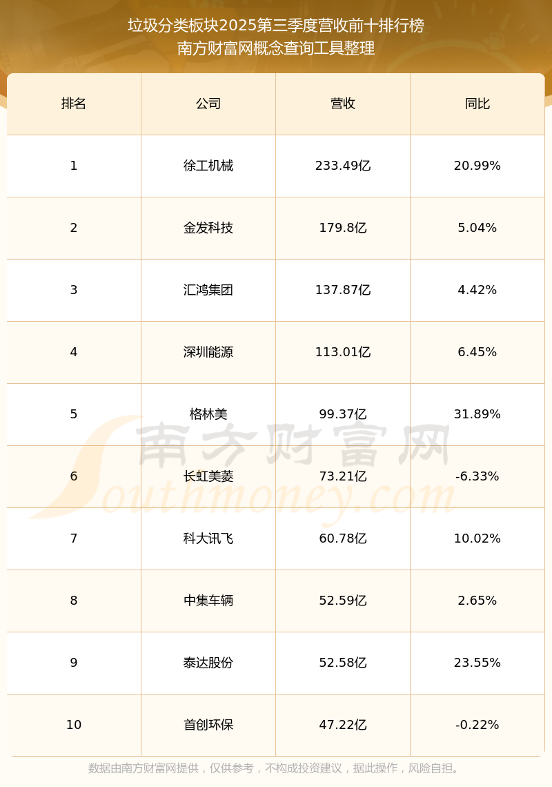 按照南方财富网概念查询工具统计,该股所属板块为垃圾分类板块,该板块共有142只股票,上海环境2025第三季度营收在该板块中排名为第31名,该板块2025第三季度营收排名前十的股票如下表:
