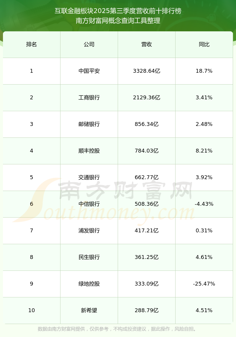 按照南方财富网概念查询工具统计,该股所属板块为互联金融板块,该板块共有238只股票,兴业证券2025第三季度营收在该板块中排名为第238名,该板块2025第三季度营收排名前十的股票如下表: