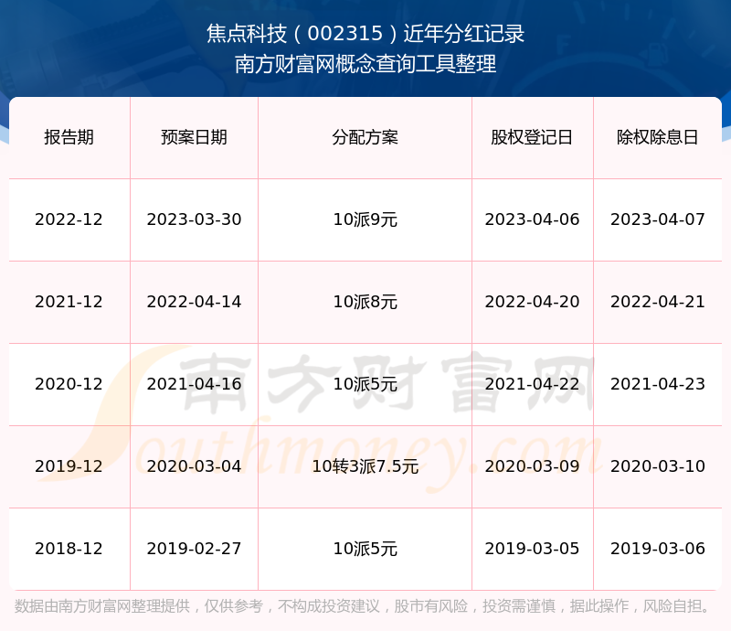焦点科技最新一次公布的分红方案为10派9元。本次权益分派股权登记日为2023年4月6日,除权除息日为2023年4月7日,派息日为2023年4月7日。