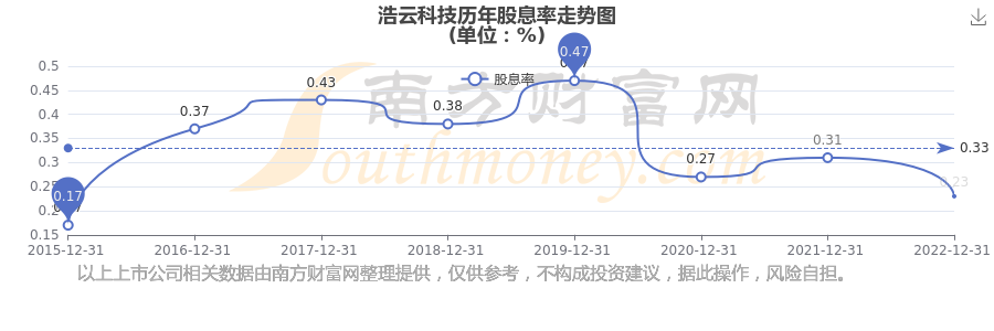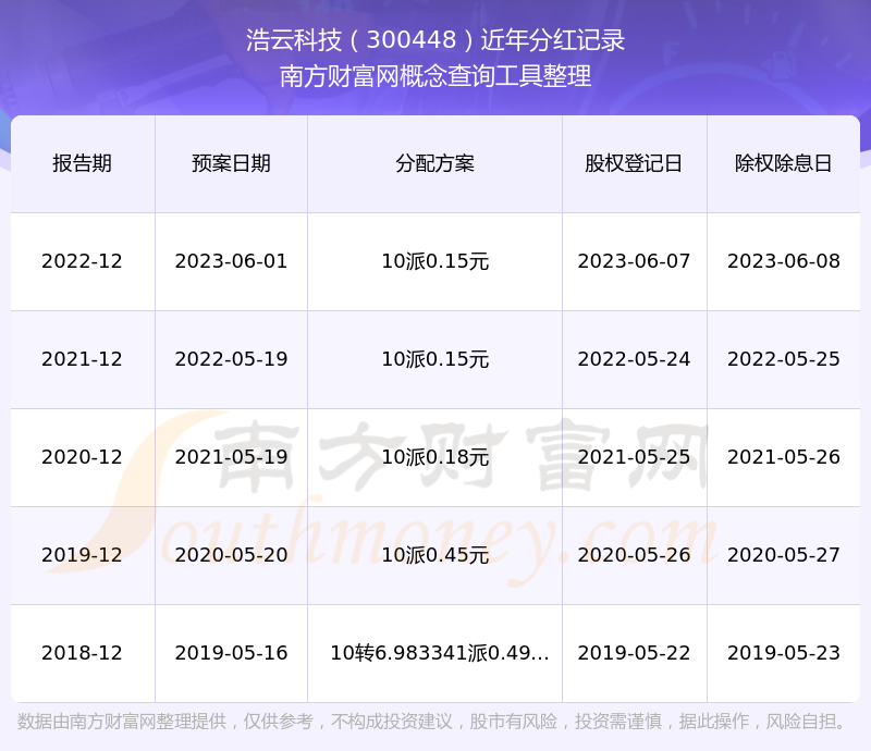 浩云科技最新一次公布的分红方案为10派0.15元。本次权益分派股权登记日为2023年6月7日,除权除息日为2023年6月8日,派息日为2023年6月8日。