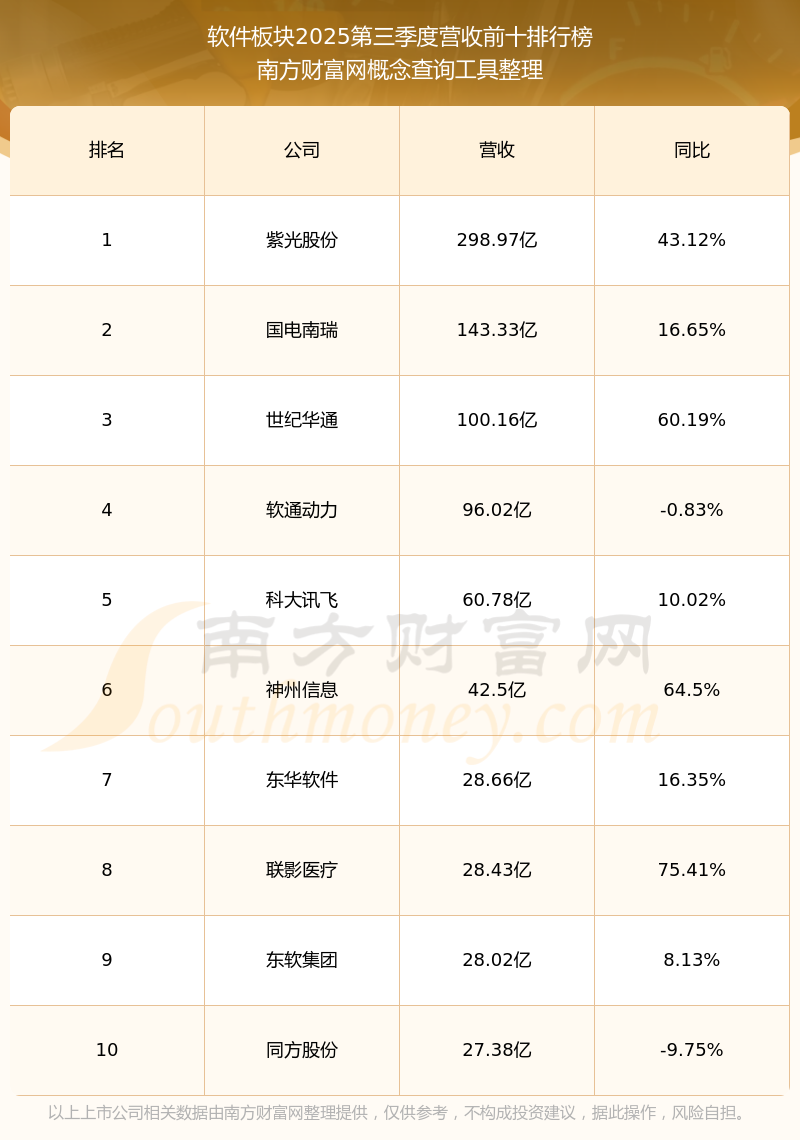 按照南方财富网概念查询工具统计,该股所属板块为软件板块,该板块共有246只股票,山石网科2025第三季度营收在该板块中排名为第109名,该板块2025第三季度营收排名前十的股票如下表: