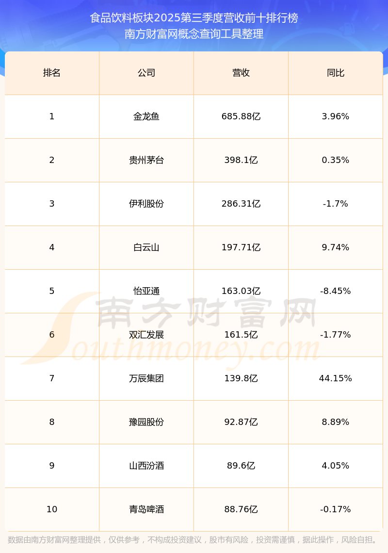 按照南方财富网概念查询工具统计,该股所属板块为食品饮料板块,该板块共有244只股票,养元饮品2025第三季度营收在该板块中排名为第53名,该板块2025第三季度营收排名前十的股票如下表: