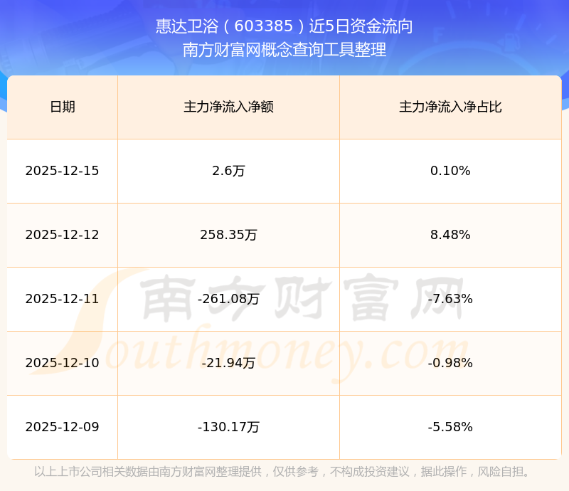 二、惠达卫浴(603385)近期盘面、资金面情况