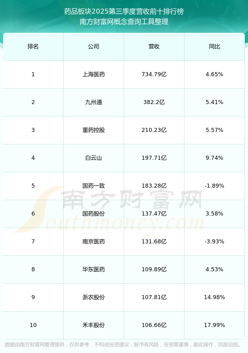 按照南方财富网概念查询工具统计,该股所属板块为药品板块,该板块共有278只股票,吉贝尔2025第三季度营收在该板块中排名为第193名,该板块2025第三季度营收排名前十的股票如下表: