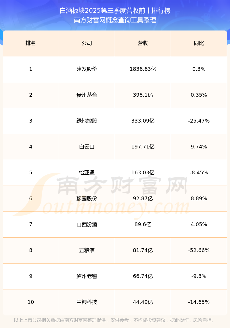 按照南方财富网概念查询工具统计,该股所属板块为白酒板块,该板块共有59只股票,伊力特2025第三季度营收在该板块中排名为第43名,该板块2025第三季度营收排名前十的股票如下表: