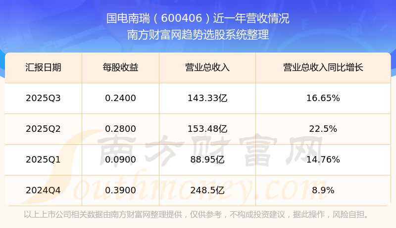 在2025年第三季度,国电南瑞的业绩表现,主营业务收入达到143.33亿元,实现了16.65%的同比增长率。同时,公司归母净利润录得19.03亿元,同比增长7.81%。