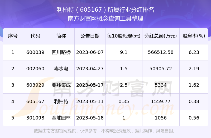 按照南方财富网趋势选股系统统计,利柏特所属行业为工程施工行业,工程施工行业分红排名情况如下表: