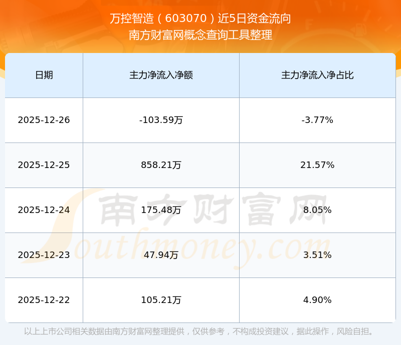 二、万控智造(603070)近期盘面、资金面情况
