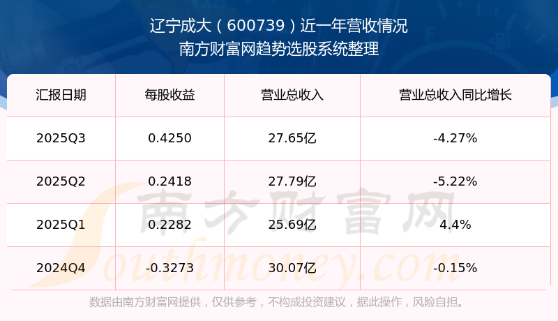 辽宁成大股票近一年营收情况如下表: