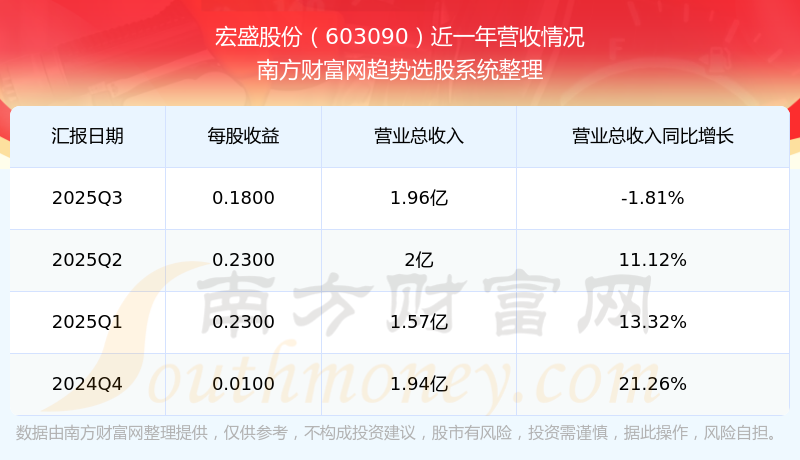 在2025年第三季度,宏盛股份的业绩表现,主营业务收入达到1.96亿元,实现了-1.81%的同比增长率。同时,公司归母净利润录得1858.7万元,同比增长9.15%。