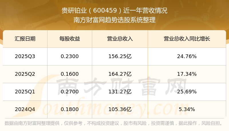 贵研铂业股票近一年营收情况如下表: