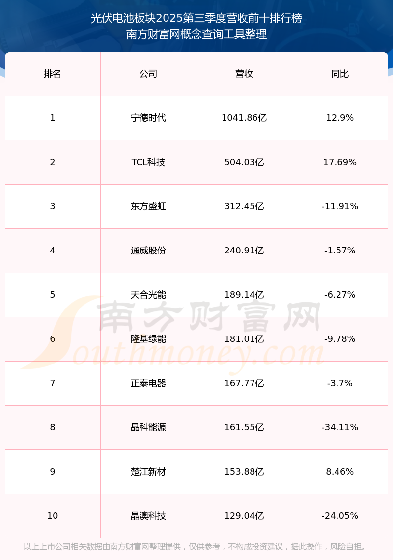 按照南方财富网概念查询工具统计,该股所属板块为光伏电池板块,该板块共有74只股票,时创能源2025第三季度营收在该板块中排名为第74名,该板块2025第三季度营收排名前十的股票如下表: