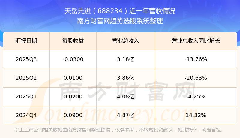 天岳先进股票近一年营收情况如下表: