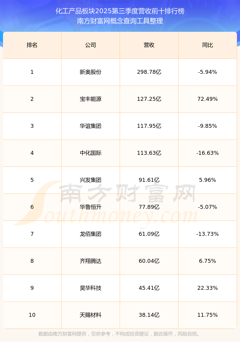 按照南方财富网概念查询工具统计,该股所属板块为化工产品板块,该板块共有64只股票,巨化股份2025第三季度营收在该板块中排名为第64名,该板块2025第三季度营收排名前十的股票如下表: